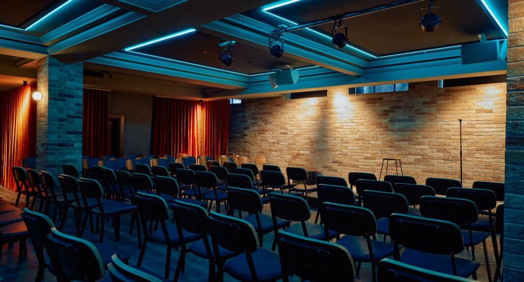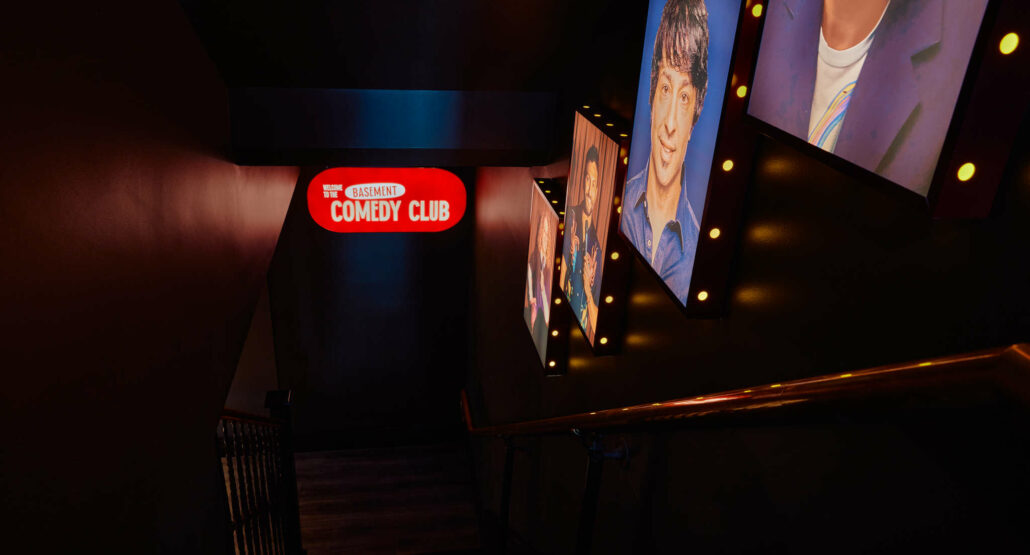 A unique space featuring exposed brick walls, stage area and private bar, the Basement Comedy Club is available for private events for up to 150 people seated (theatre style) and 150 people standing.