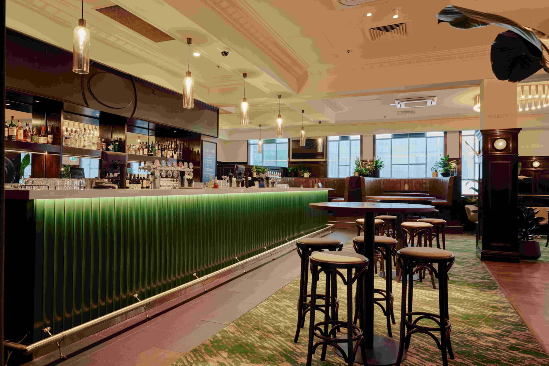 Want to have the Rooftop all to yourself? Suitable for up to 180 people, celebrate in our leafy green open-air oasis in the heart of the city. With glass balustrades and retractable awnings, it’s the perfect all-weather spot to soak up the city surrounds.